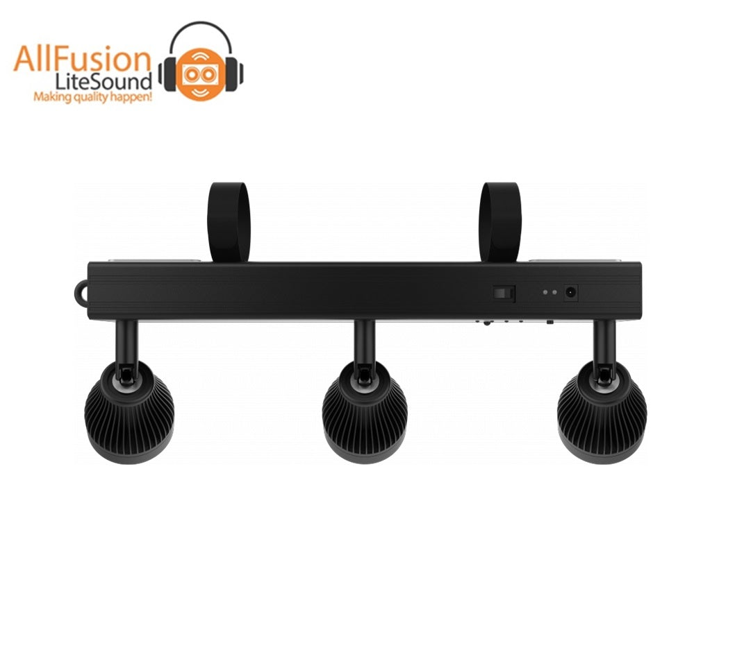 Battery-powered bar with 3 independent pin spots designed to accent anything