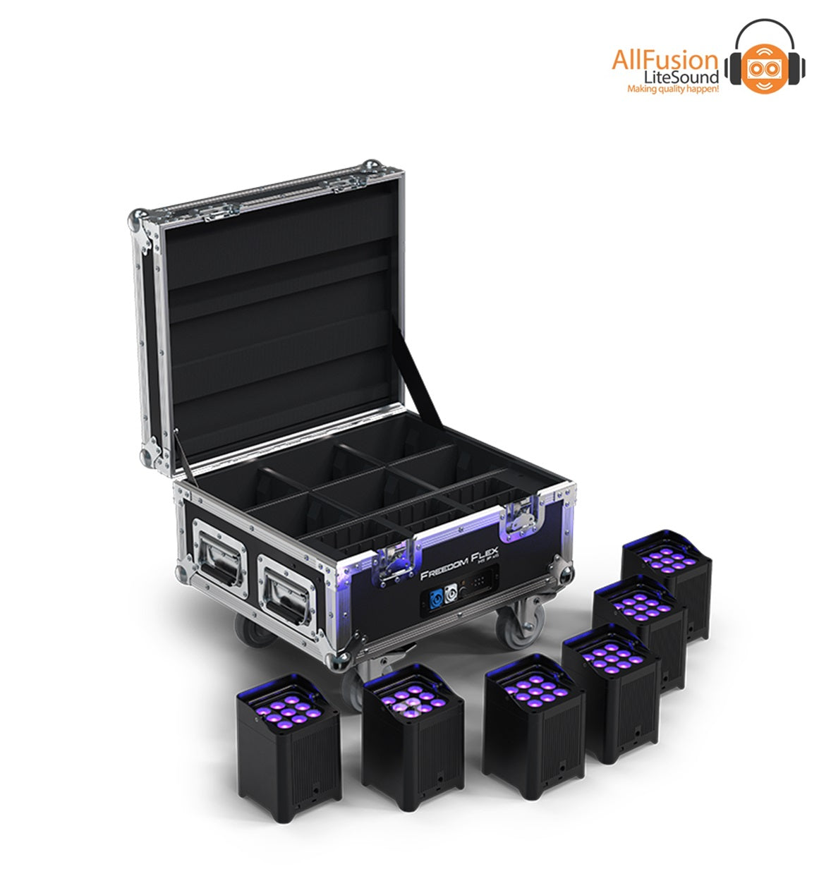 100% TRUE wireless, battery-operated, uplight package with built-in D-Fi transceivers Swappable battery packs ensure the fixture is always ready to go Charging road case simultaneously charges up to 6 batteries Robust housing repels mother nature for temporary outdoor situations New secondary optics provide perfect color blending with nearly no artifacts Magnetic diffuser pops on or off with ease and widens the coverage area Adjustable run times ensure the fixture will last the length of the event OLED display allows for full-text and to easily change fixture’s settings Built-in RF receiver for wireless control using the included RFC or optional RFC-XL remotes Adjust the projection angle using the spring-loaded kickstand Built-in glare shield protects light spillage and eye fatigue Extend the fixture’s lifespan with the onboard charge and discharge protection circuitry Achieve smooth LED fading with built-in dimming curvesHighlights
